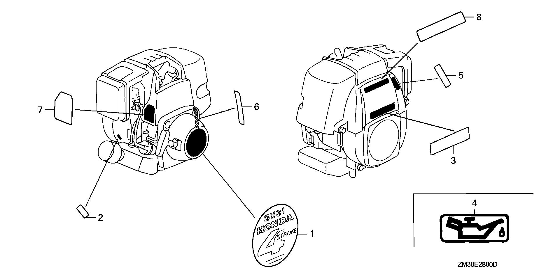 Engines GX GX31 GX31 SAT5 GCAG-1000001-2099999 LABEL (HORIZONTAL TYPE) - Stanford Home Centers